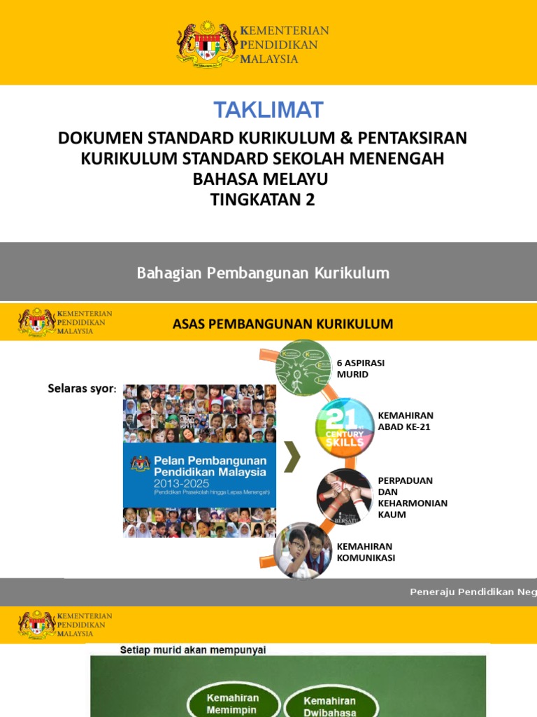 I bahasa melayu tingkatan 1 dokumen standard kurikulum dan pentaksiran kurikulum standard sekolah menengah 2.