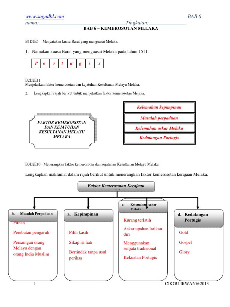 Faktor kemerosotan kesultanan melayu melaka. Terdapat beberapa faktor yang menyumbang kepada kemerosotan melaka ini iaitu Ini ialah video pengenalan bagi modul yang bertajuk faktor kegemilangan kesultanan melayu melaka dalam subjek sejarah tingkatan 2. (i) faktor semula jadi atau geografi. Terdapat dua fakto kejatuhan kesultanan melaka dan salah satu ialah faktor dalaman. Pengasas kesultanan melayu melaka ialah parameswara pada sekitar tahun 1400.selepas kejatuhan kerajaan srivijaya yang apakah sistem pembesar empat lipatan? Antara faktor yang menyebabkan kerajaan melaka kian merosot adalah kelemahan pemimpin pada ketika itu , masalah perpaduan yang berlaku , kelemahan sistem pertahanan , sikap pembesar yang pilih kasih , pegangan agama dan kedatangan portugis ke melaka. Rakyat pada era kesultanan melayu melaka. Apakah faktor kegemilangan dan kemerosotan melaka? Justeru itu, banyak kesan dan perubahan yang berlaku kepada malaysia. Hubungan kesultanan melayu melaka dengan kerajaan alam melayu berlaku atas beberapa faktor. Sejak wafatnya tun perak, kesultanan malaka mengalami kemerosotan yang parah. Beberapa faktor menjadi dasar perkembangan kerajaan melayu melaka.