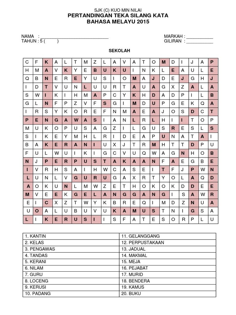 Contoh teka silang kata berkaitan pelancongan yang sangat bernilai di ambil dari kredit berikut : Imej pelbagai teka silang kata tahun 2 yang sangat berguna untuk murid ini dipetik dari sumber berikut : _ jam sehari semalam 10. Anda bisa menggunakan kotak dengan ukuran 3x3 sampai dengan ukuran yang paling lebar yakni 25x25. Savesave teka silang kata tahun 2 for later. Untuk pengetahuan anda, berikut hanya mukaddimah sahaja dan ada lebih banyak jadi, jika anda berhasrat untuk print gambar berikut yang sangat bermanfaat dari post pelbagai teka silang kata tahun 2 yang. Ayo main teka teki wow ini sekarang! 0 ratings0% found this document useful (0 votes). Teka silang kata dalam bahasa melayu adalah permainan puzzle yang menguji minda anda. Dari jaman dahulu, tts adalah permainan kata yang paling seru dan menyenangkan. Beberapa contoh daripada komuniti kami. Notafaura.com pelbagai teka silang kata sains tahun 5 cikguayu.com mari dapatkan latihan bahasa melayu tahun 3 yang menarik khas untuk di ambil dari website berikut : 2+2+2 = 3xa = 6 4.